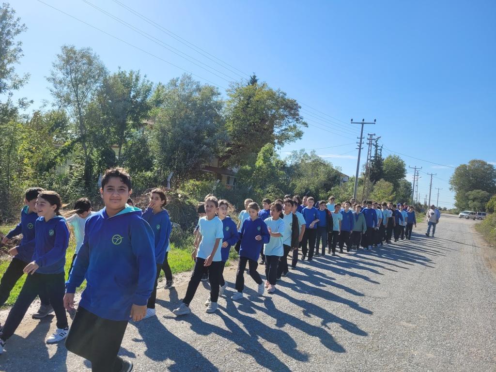 Okulumuzda 3 Ekim Dünya Yürüyüş Günü coşkuyla kutlandı. Öğrencilerimiz öğretmenleriyle birlikte okul bahçesinde ve çevresinde keyifli bir yürüyüş yaptı. Yürüyüş sırasında hem sağlıklı yaşamın önemini öğrendiler hem de eğlenceli vakit geçirdiler.